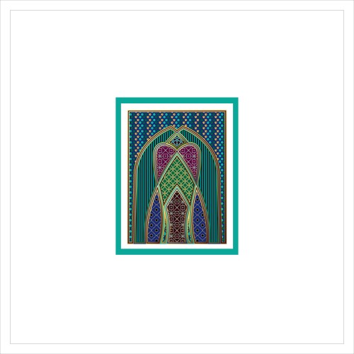 صورة تحتوي على تصميم فني يتميز بخلفية مليئة بالخط العربي بتنوع من الأشكال والألو ...